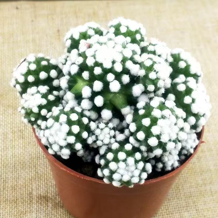 Mammillaria Gracilis Cv. Arizona is a succulent plant in the cactus family, genus Mammillaria. Its Chinese name is “明日香姬”. The scientific name is Mammillaria gracilis cv. Arizona Snowcap, a natural variant of the Mammillaria genus. Growth habit: it prefers ample sunlight and good ventilation, but needs shade during summer. It tolerates drought, is vulnerable to waterlogging, and watering should be controlled. It is suitable for growing in loose, airy soil, with an optimal growth temperature in a mild climate.