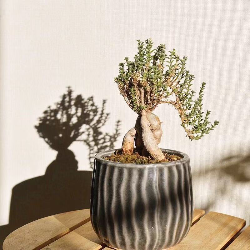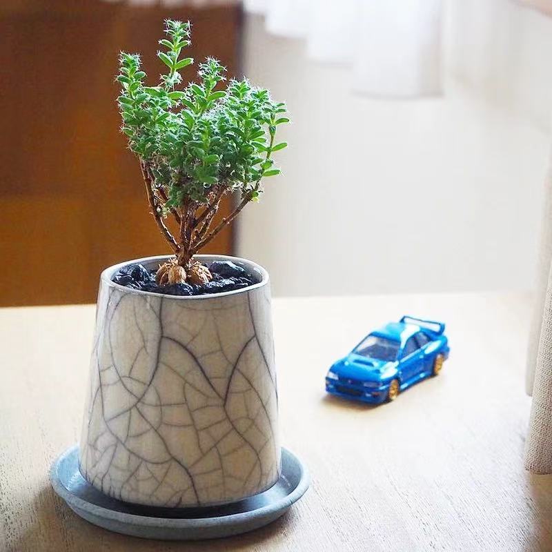 Jihong Xiaosong (scientific name: Trichodiadema bulbosum Schwantes) is a plant in the family Aizoaceae, genus Aizo. It is a perennial succulent dwarf shrub, 7–12 cm tall. It has a gray‑white appearance, with swollen, thick, juicy stems. It branches strongly. The green spindle‑shaped leaves are opposite, 0.8–2 cm long. The leaf tips bear clusters of white short fine hairs. The small flowers are peach‑pink, borne at the tops of branches. Flowering occurs in spring and autumn.